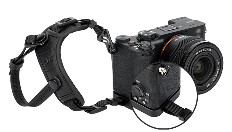 ●握把處的底板附掛洞,讓你同時使用手腕帶或相機減壓揹帶。