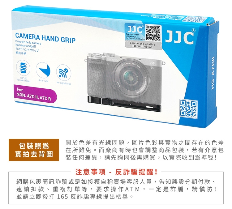 ●【品名】JJC副廠Sony鋁合金延伸握把相機底座HG-A7CII(相容索尼原廠GP-X2且可裝AirTag;含阿卡Arca-Swiss快拆板)適a7C II R