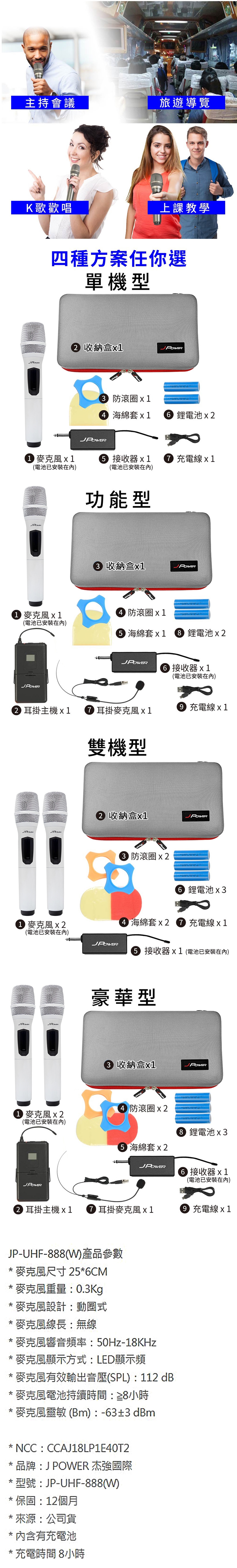 JPOWER 震天雷UHF無線麥克風 - 豪華型 (珍珠白)