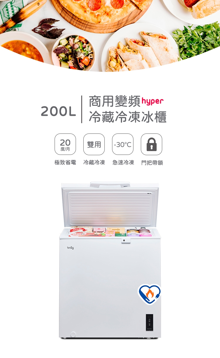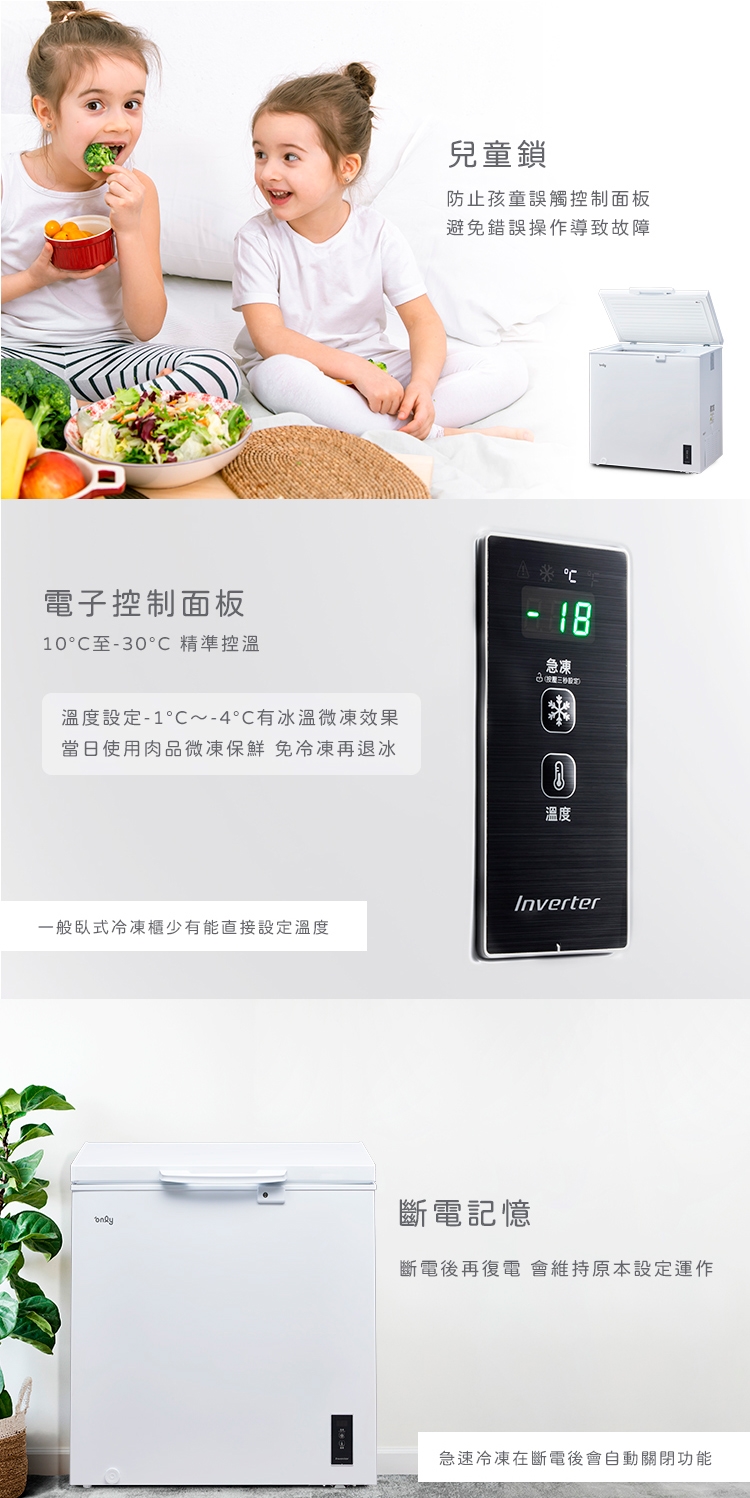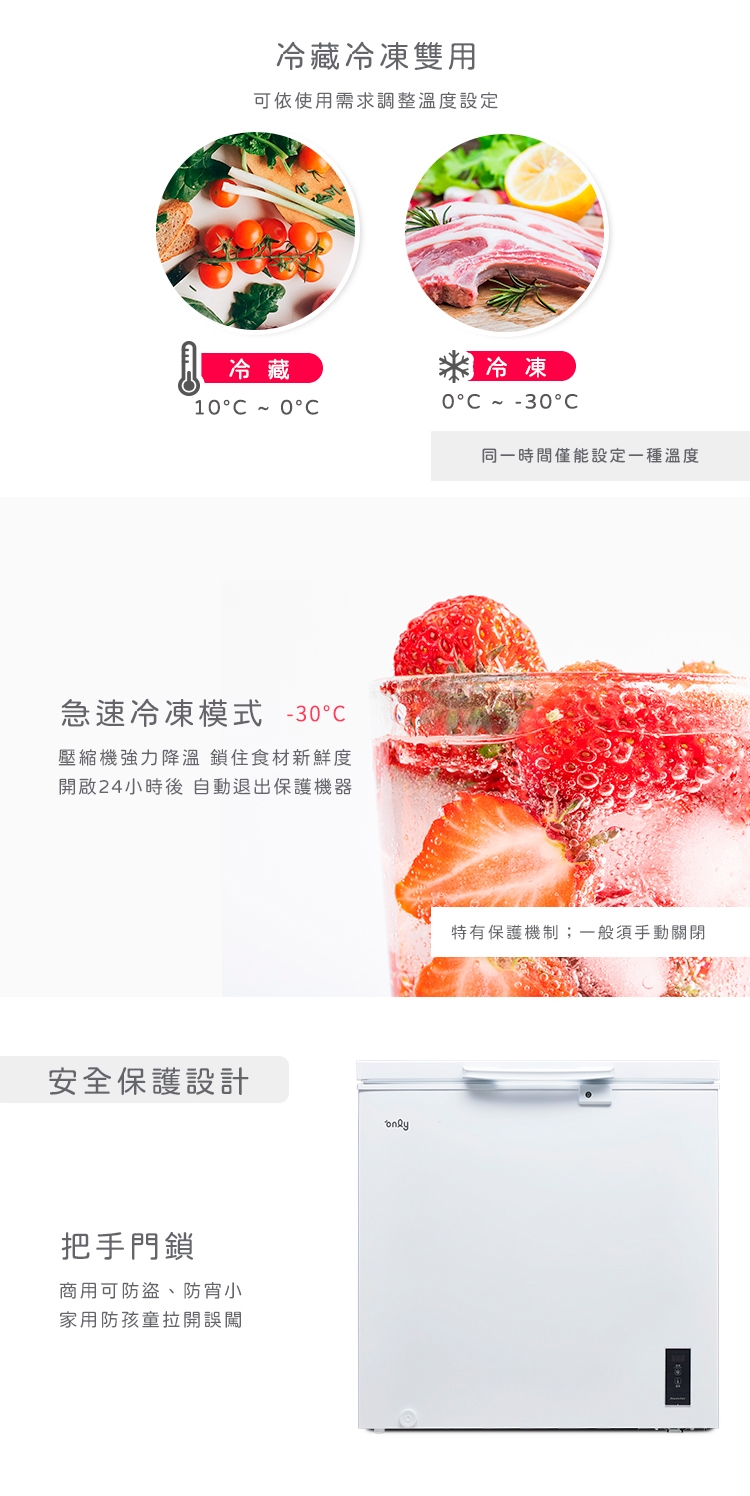 溫度調節:冷藏10~0°C;冷凍0~-30°C (預設-18°C)