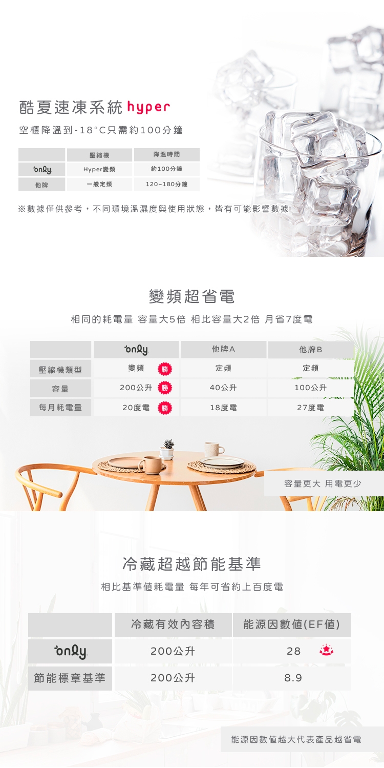 冷藏模式能源因數值(EF值):28.0 ℓ/kWh/月