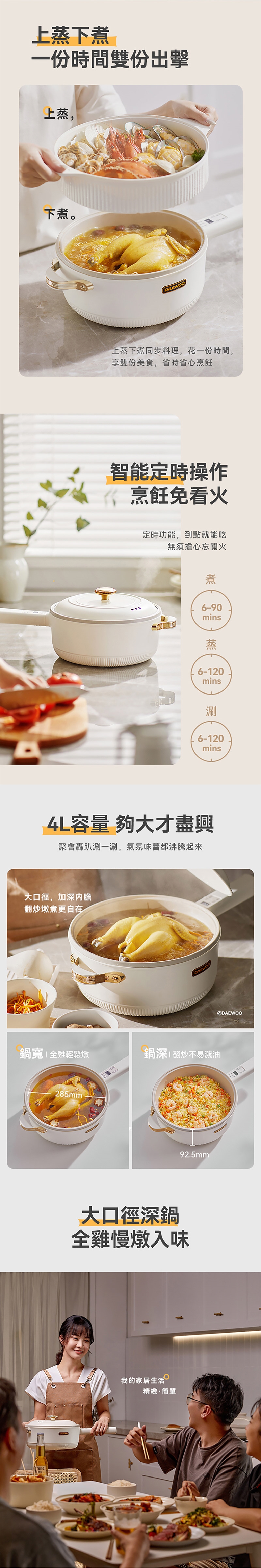 ◆4L大容量,大口徑+加深內膽,全雞輕鬆燉、翻炒不濺油。