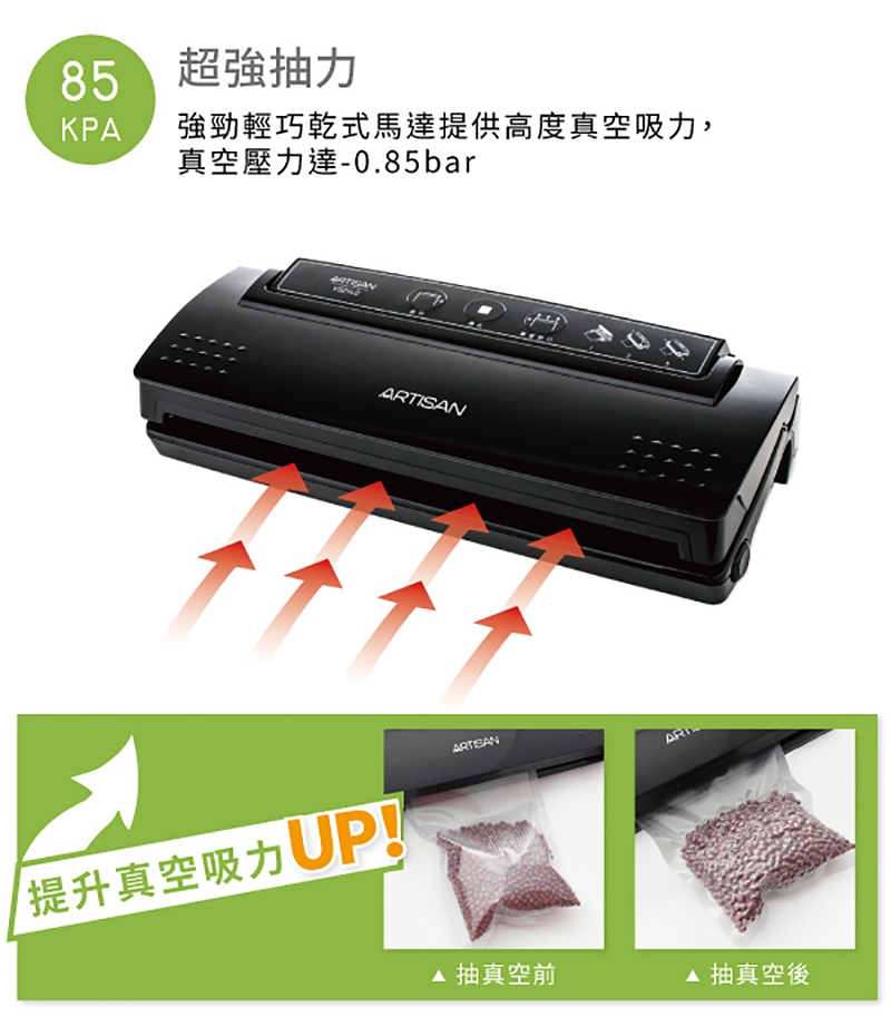 ※ 此機型不適合真空包裝有水份、液體及粉類食材,易被吸入機體內造成故障