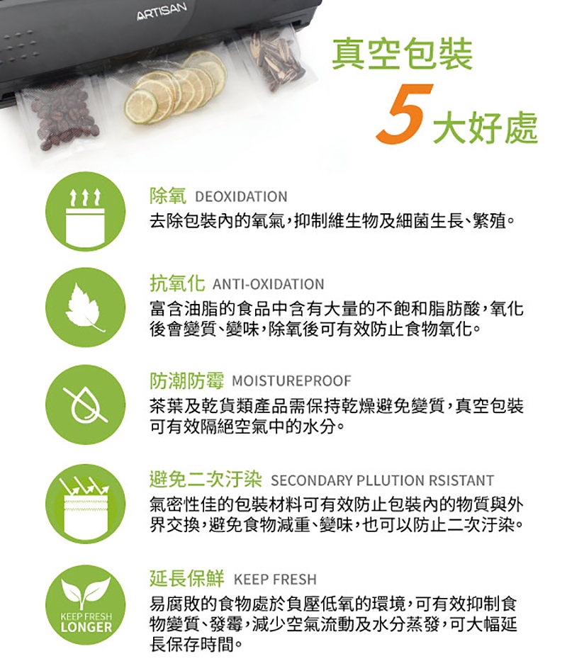 ● 真空包裝延長食物保存期限
