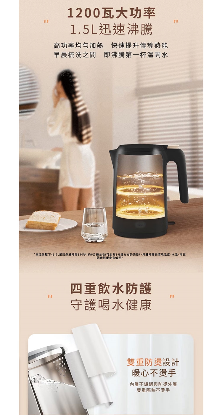 ★ 1.5公升大容量快速沸騰