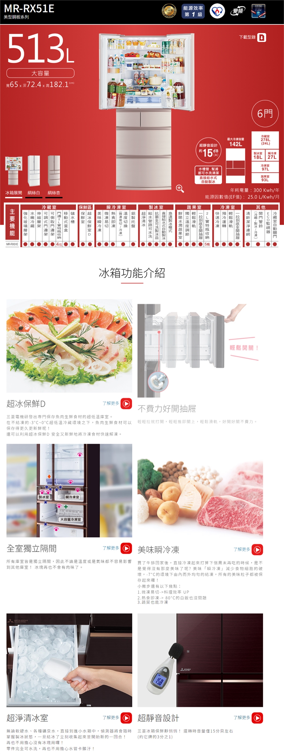 MITSUBISHI三菱513公升日本製變頻六門電冰箱MR-RX51E