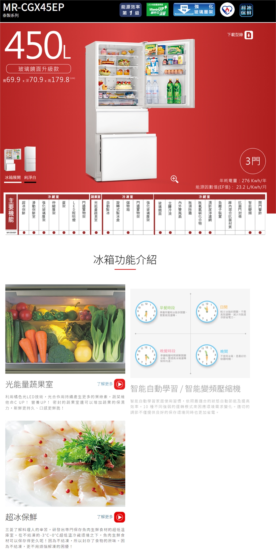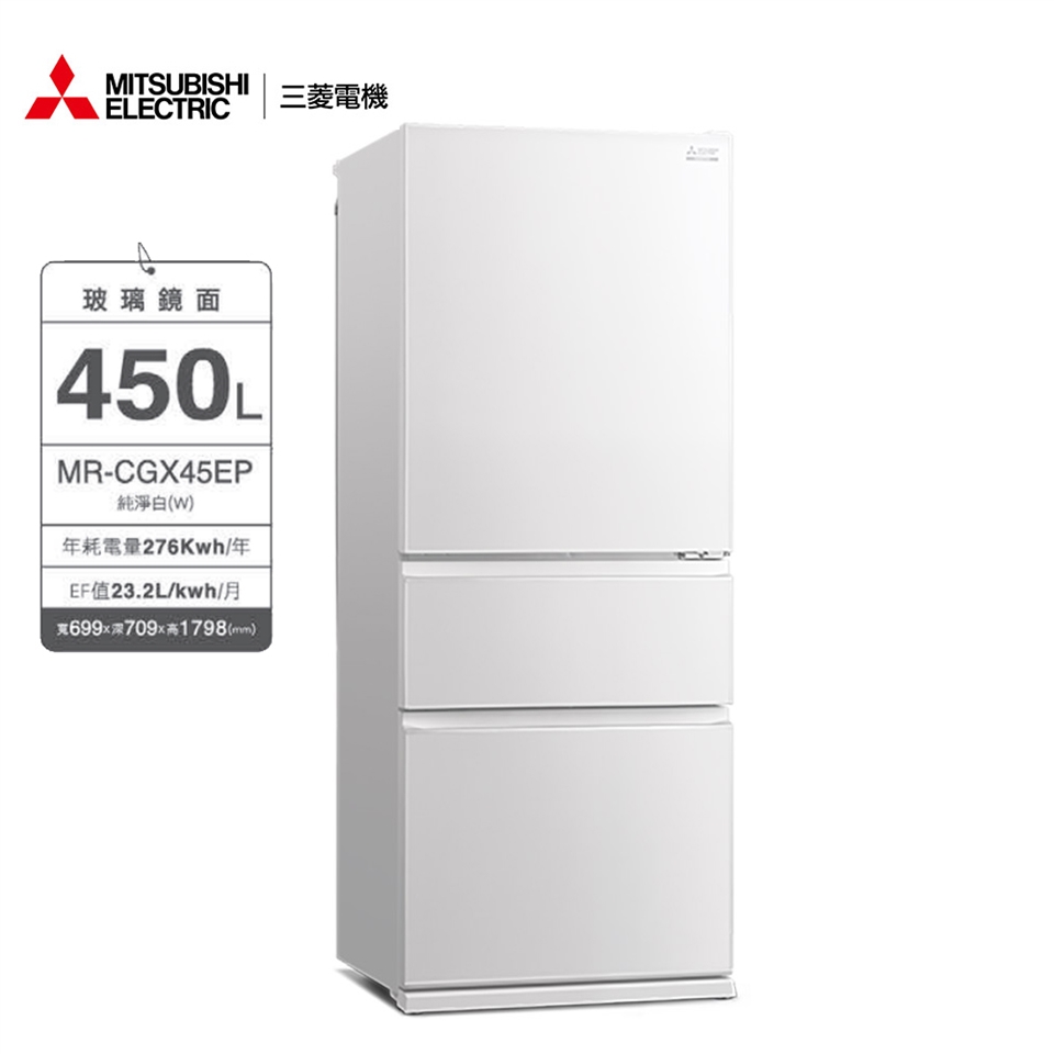 MITSUBISHI三菱450公升變頻玻璃鏡面三門冰箱MR-CGX45EP