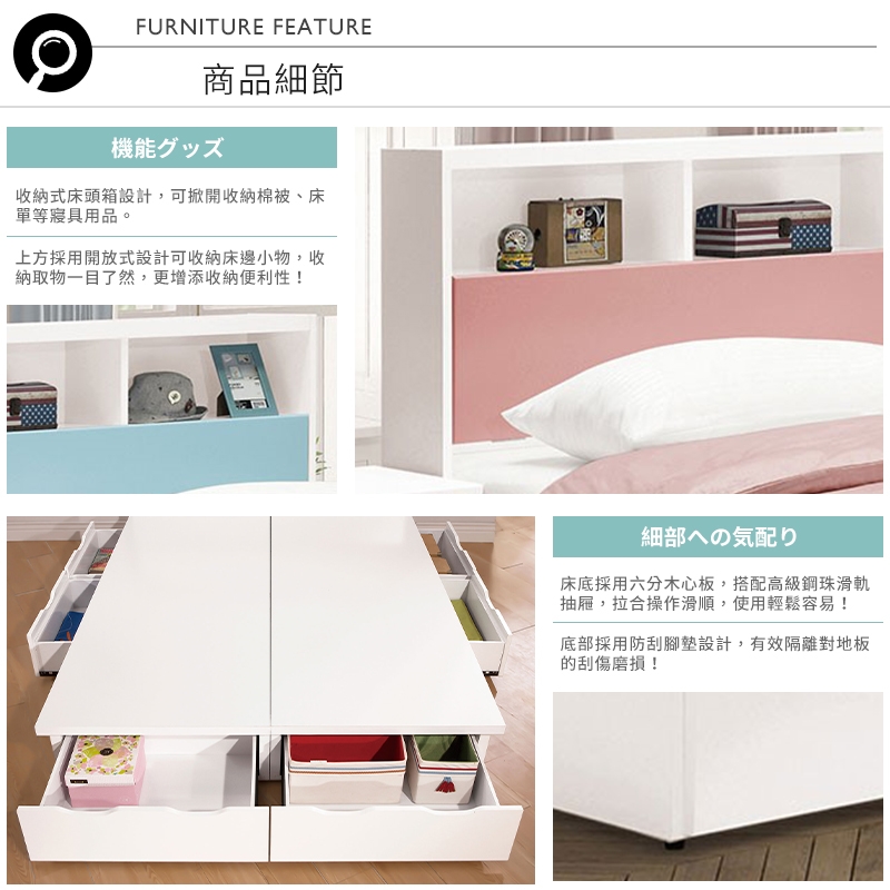 上方採開放式收納,可擺放常用床邊小物,便利又實用!