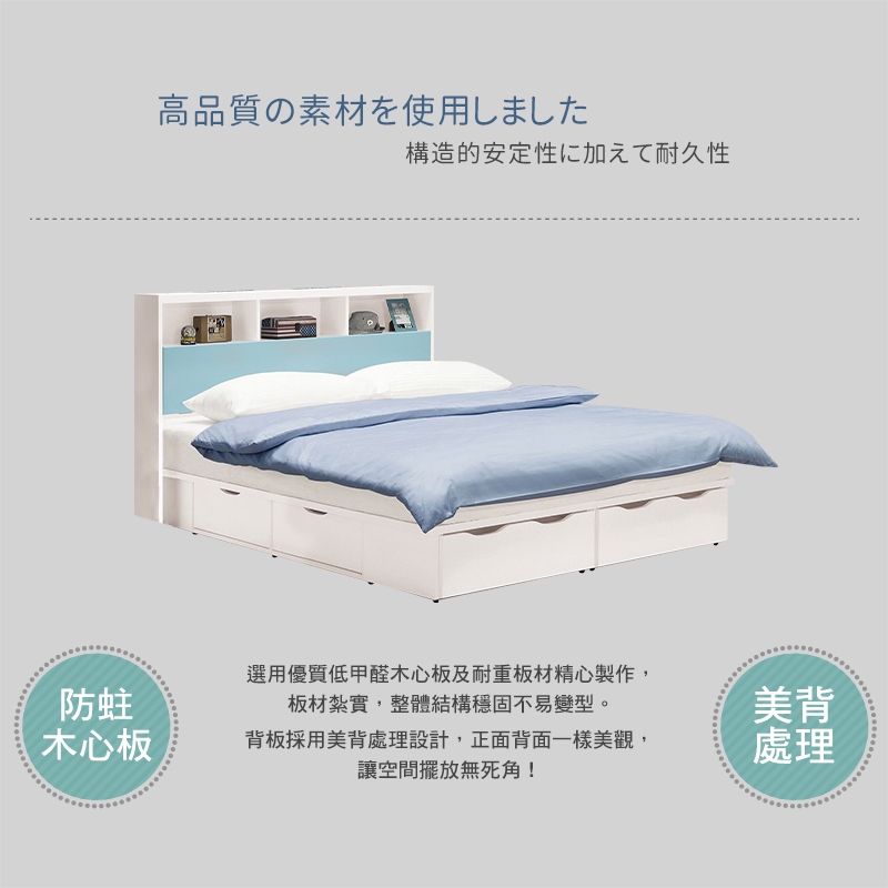 收納床頭箱設計,可收納棉被、床單等,有效利用空間不浪費!