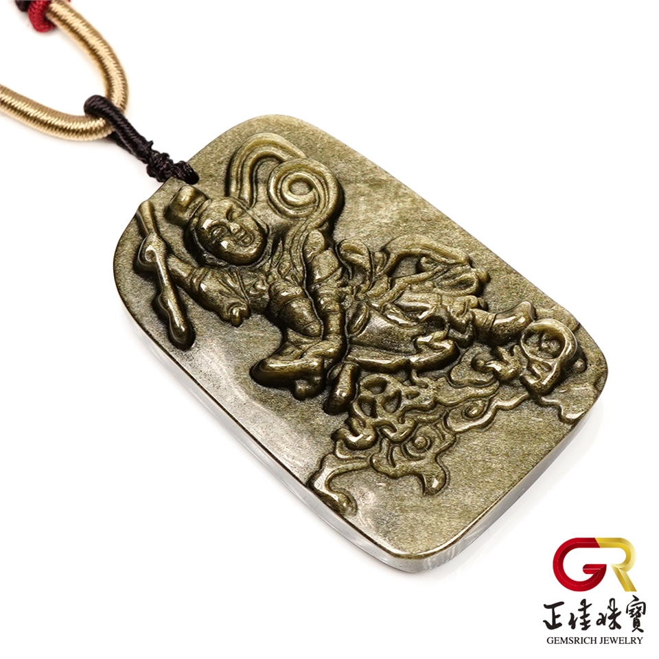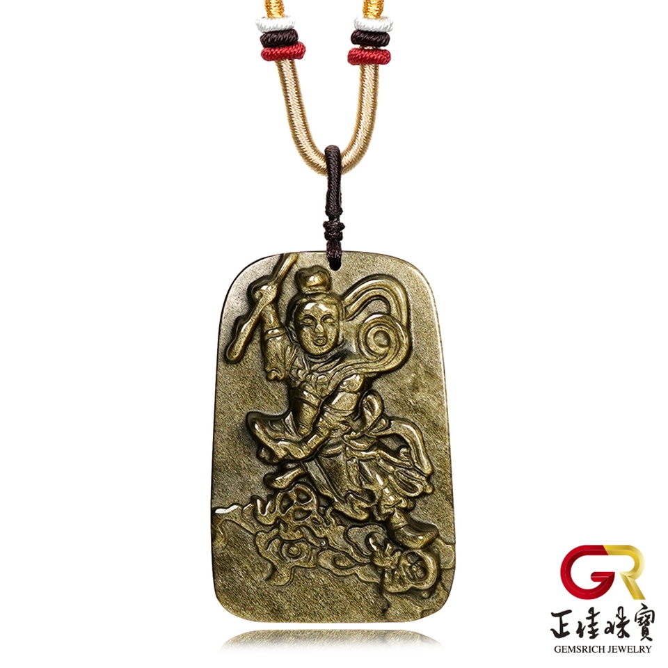 金曜石 三太子哪吒 三太子金曜石吊墜|特製棉繩