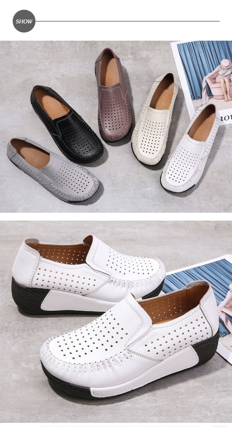 【MOM】真皮星星沖孔厚底休閒鞋/真皮縷空星星沖孔百搭舒適厚底休閒鞋 女鞋 白