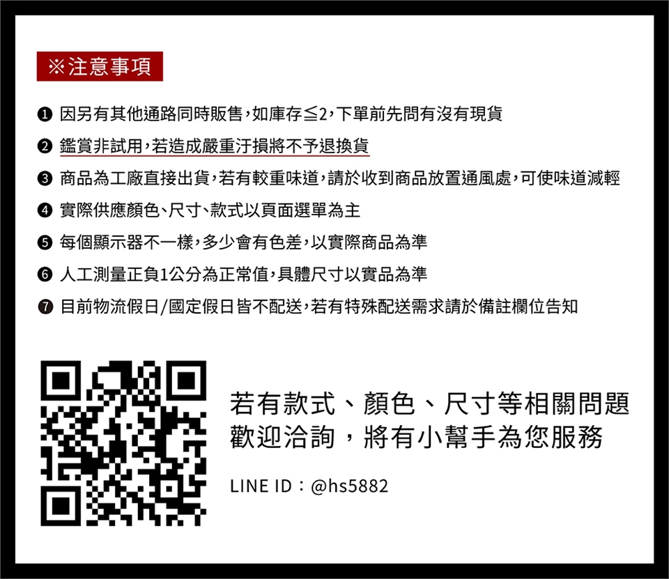 * 本商品為工廠直接出貨,會有較重的塑膠味道,請於收到商品放置通風處,可使味道減輕