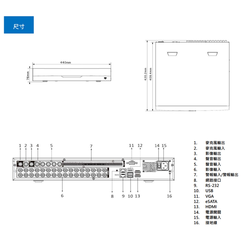 -H265,32路 4硬碟(單顆最大支援16TB),IP:32,警報:16輸入 / 6輸出