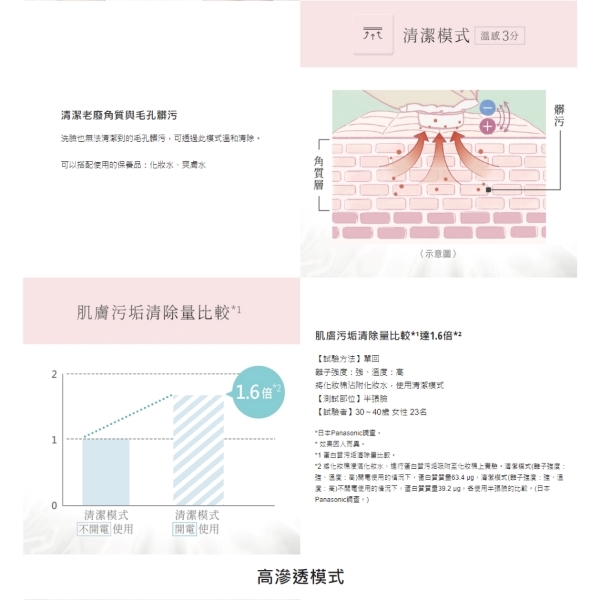 肌膚更水潤透亮 - 搭載保濕/亮膚/快速護理模式,將保濕成分、維他命C滲透至肌膚角質層