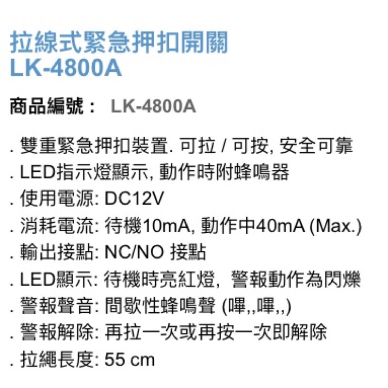 -警報解除: 再拉一次或再按一次即解除