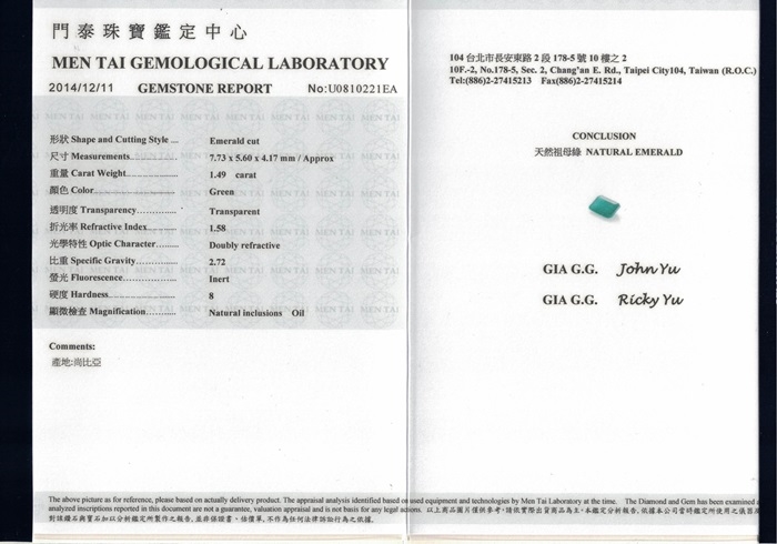 4.保證所採用的寶石皆為天然寶石‧主石為高品質天然祖母綠,每顆皆經過嚴格挑選