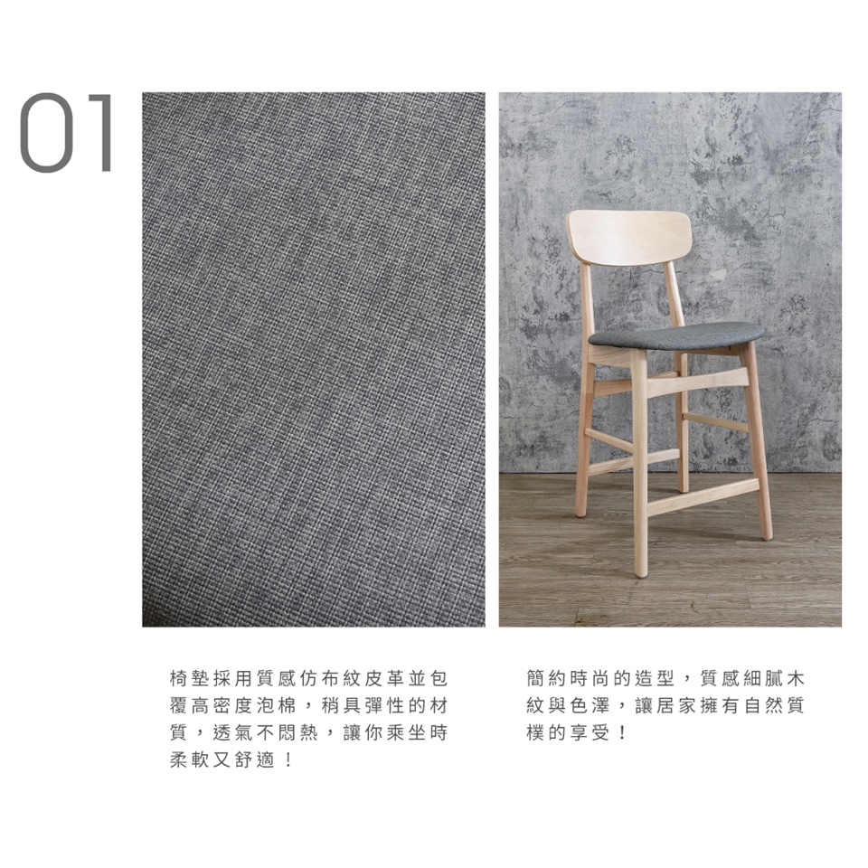 椅墊選用質感仿布紋皮革包覆高密度泡棉,坐感柔軟舒適!