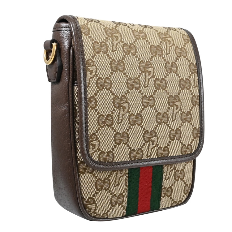 Gucci x Palace Skateboards聯名系列,限定版雙G緹花織布拼接皮革,設計簡約大方,包款輕便小巧,翻蓋開口,內1貼袋+2卡片夾層/外1拉鍊袋供收納,可放中夾、手機、鑰匙等隨身物品,包款簡約時尚,展現俏麗、摩登的雙重時尚感!