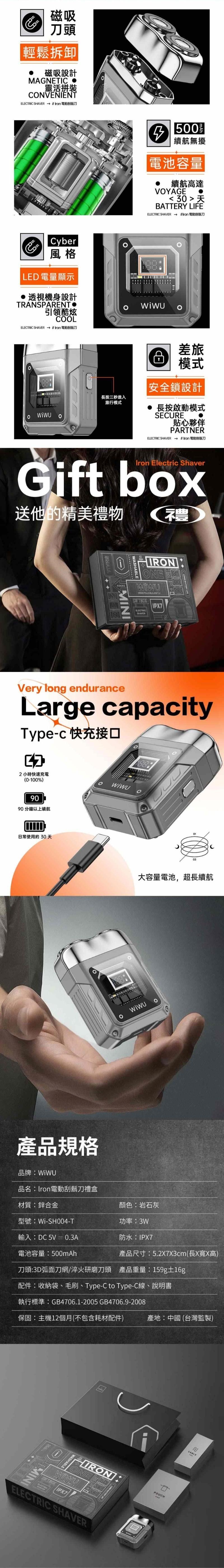 WiWU Iron電動刮鬍刀禮盒 WI-SH004-T