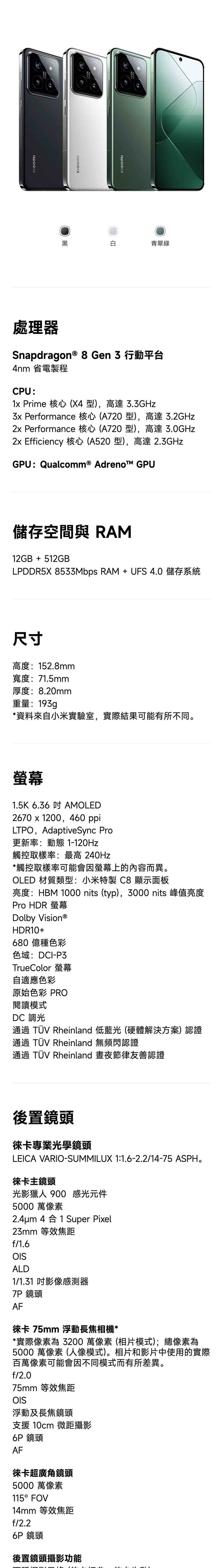 以上規格資料若有任何錯誤,以原廠所公佈資料為準
