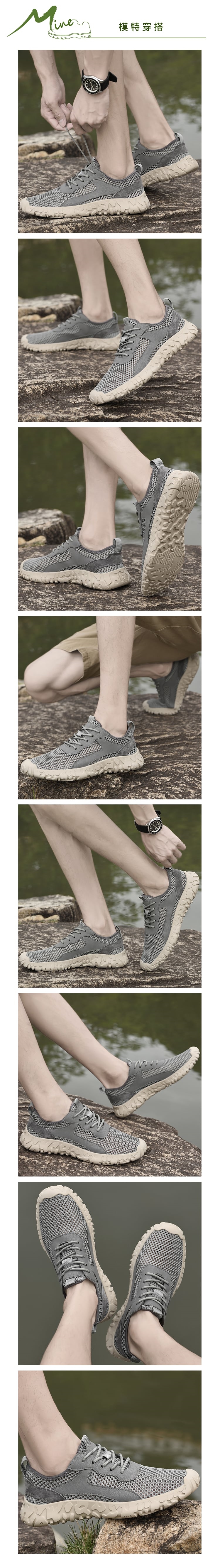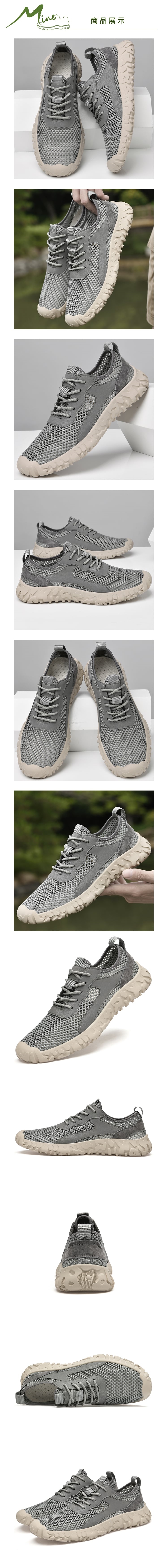 【MINE】透氣網面戶外休閒鞋/透氣網面拼接涼感戶外休閒鞋 男鞋 灰