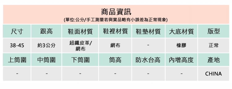 2.鞋類商品依功能及用途之不同,鞋底各有其止滑係數之個別不同,使用鞋類商品請用於正常平坦之路面,非雨鞋或雨靴類商品,請避免穿著於下雨濕滑路面上行走。