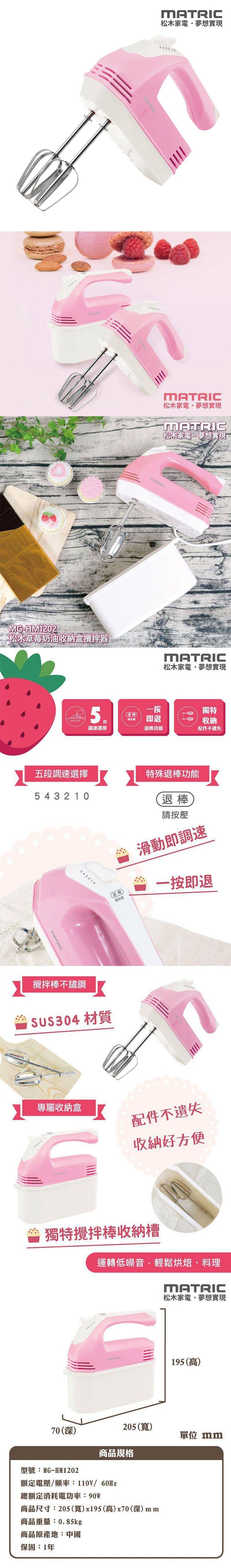 MATRIC松木 草莓奶油收納盒攪拌器 MG-HM1202(五段調速)