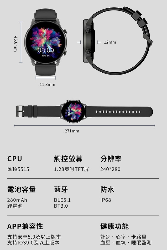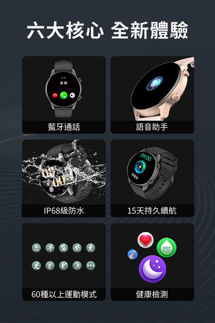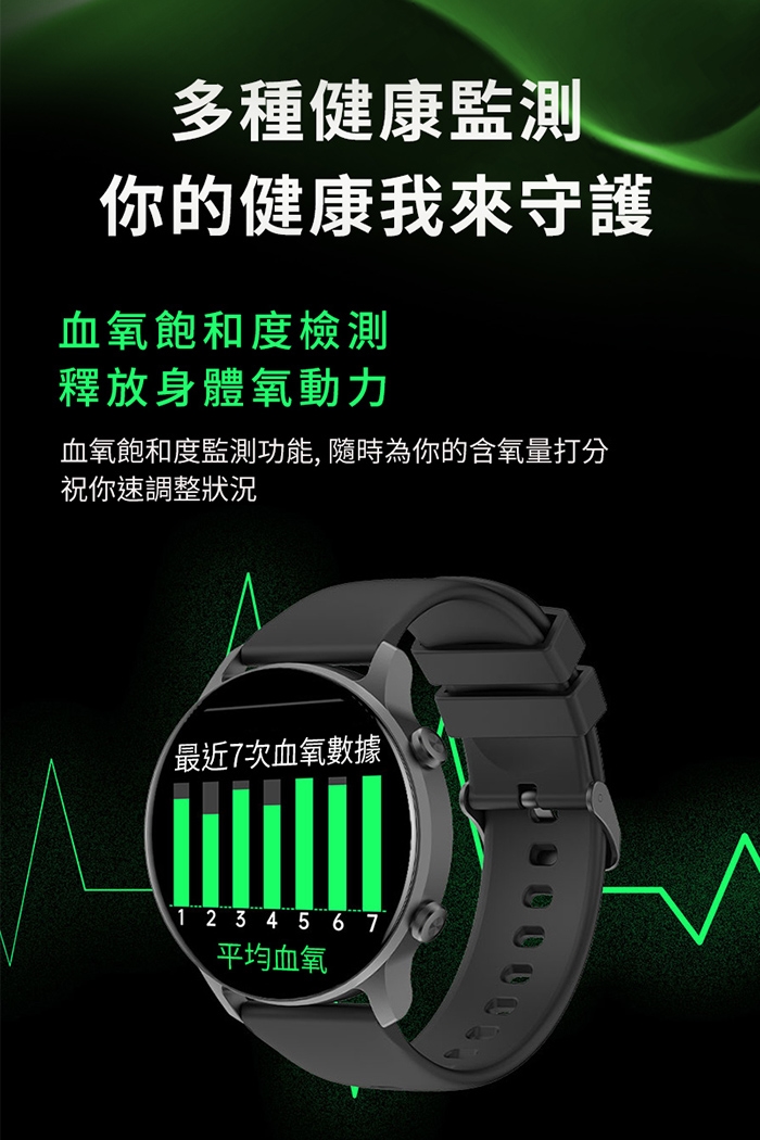 健康功能:計步、心率、卡路里、血壓、血氧、睡眠監測