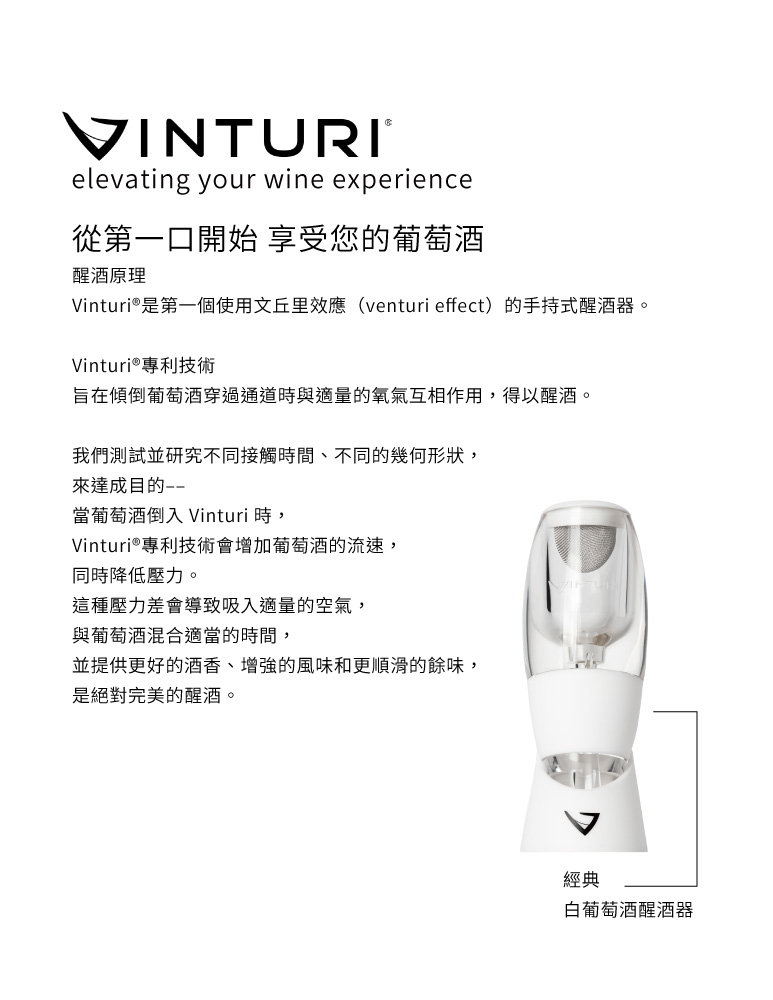 l 使用Vinturi,無需像傳統醒酒器那樣等待。