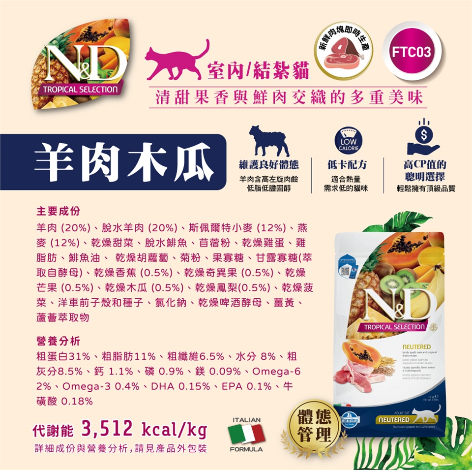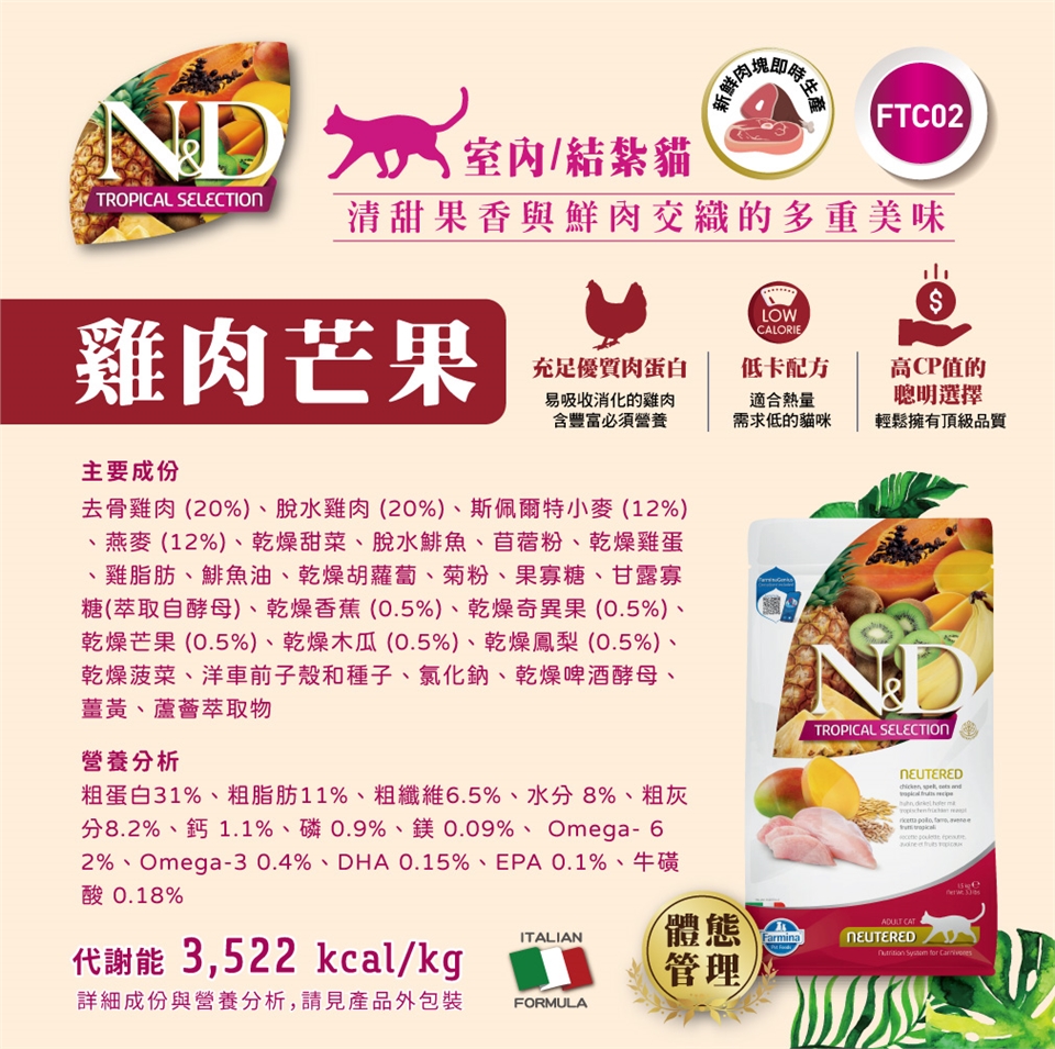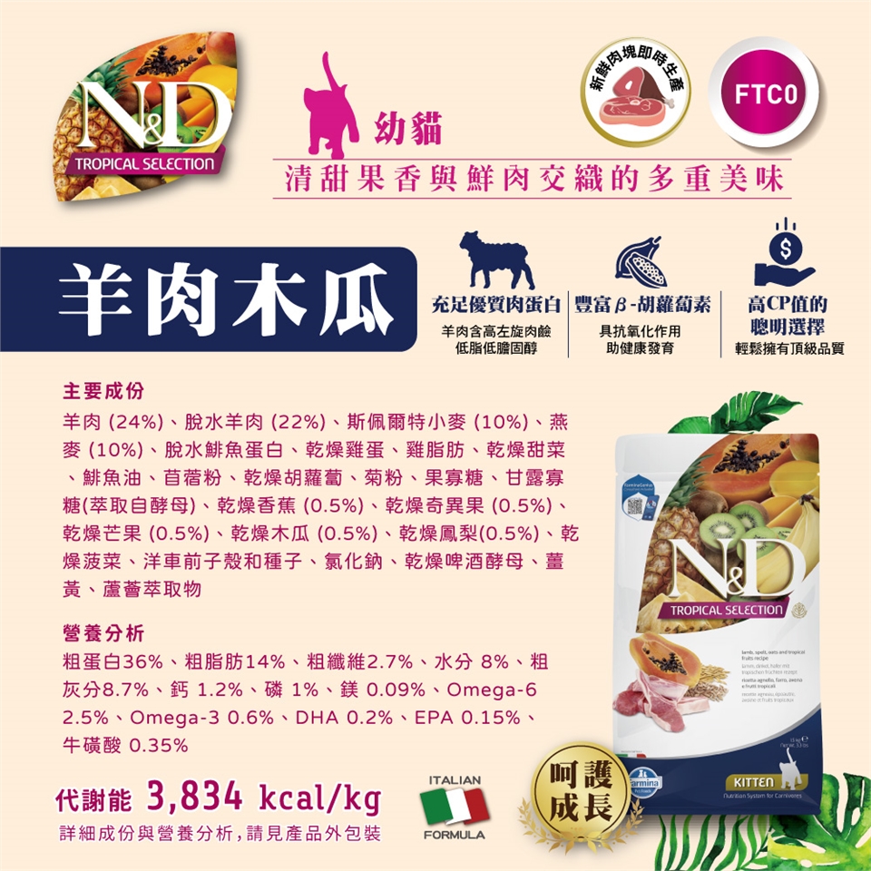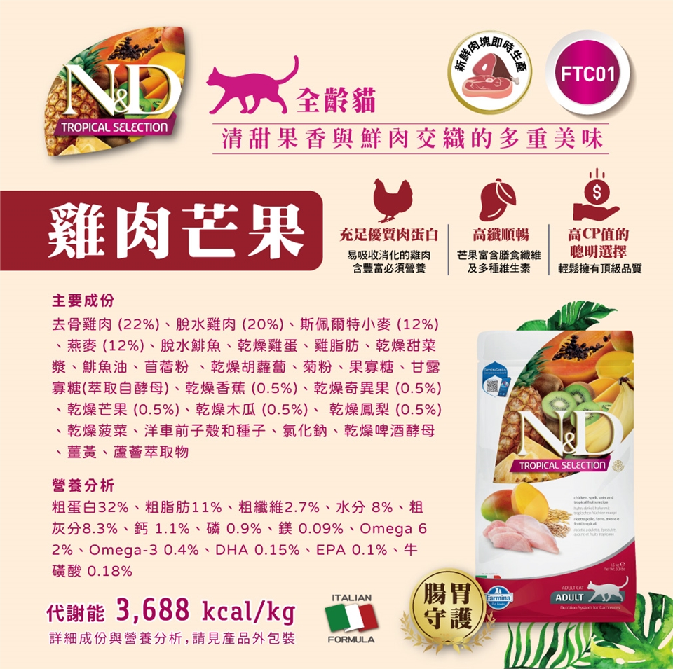 初次使用法米納全系列天然糧時,請先與原飼料混合食用,以至少7日逐漸轉換,以免寵物腸胃不適應。