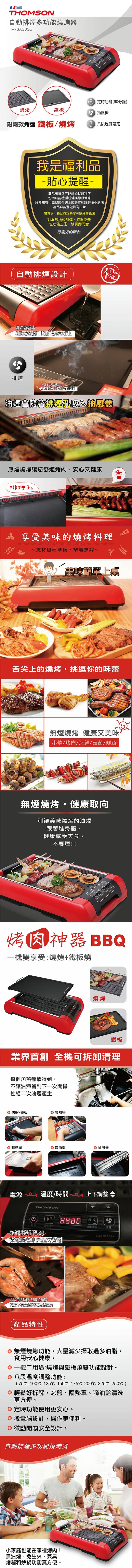 原廠福利品 THOMSON 自動排煙多功能燒烤器(附兩款烤盤) TM-SAS03G