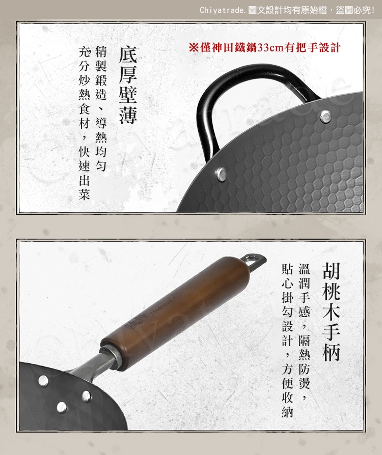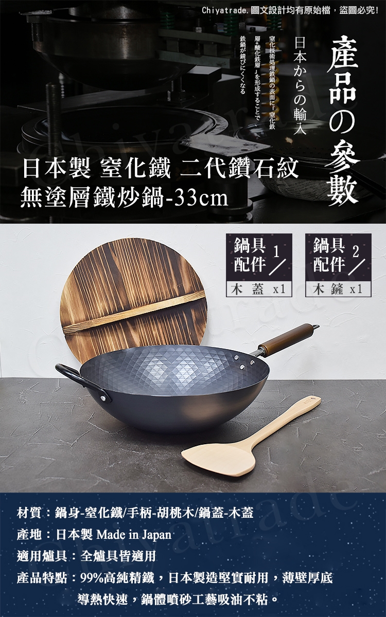 -材質:鍋身-窒化鐵/手柄-胡桃木/鍋蓋-木蓋