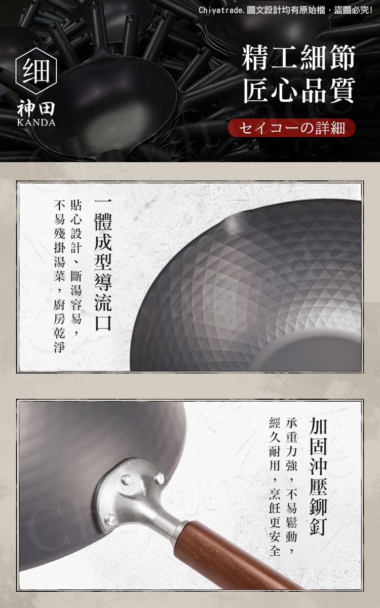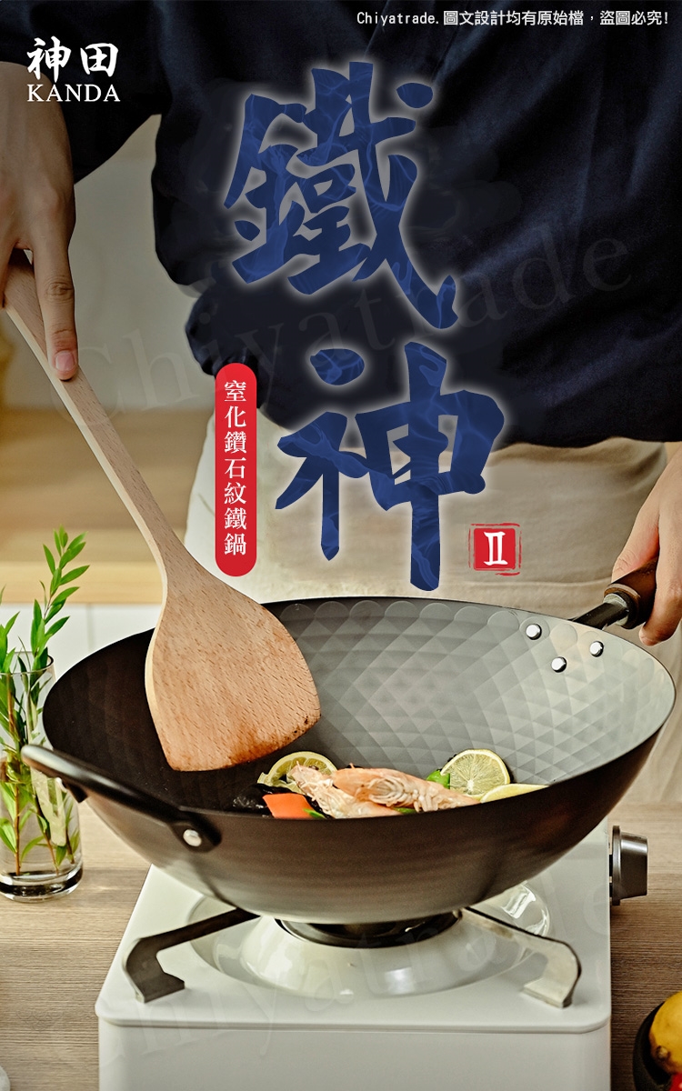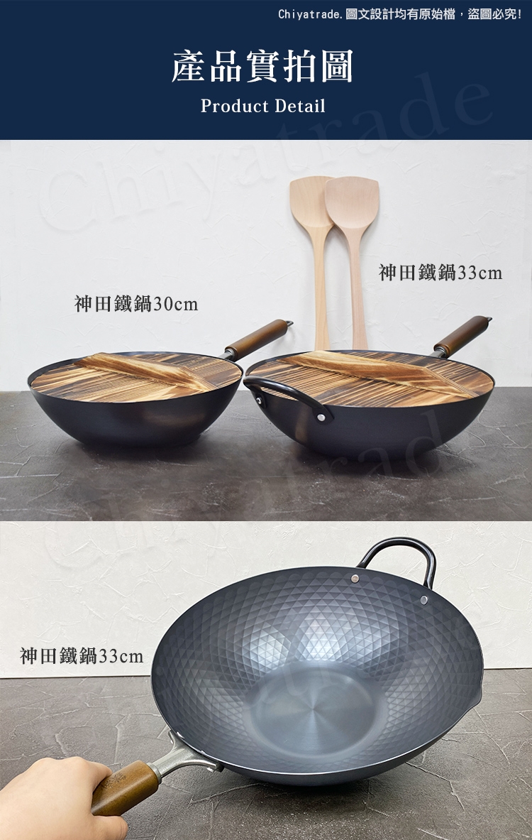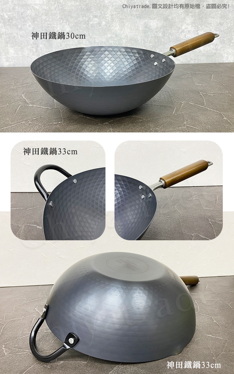 神田鑽石紋 無塗層鐵炒鍋 33cm