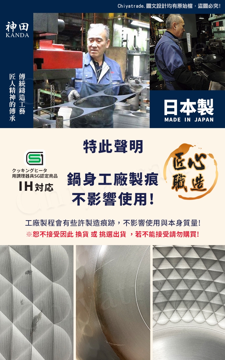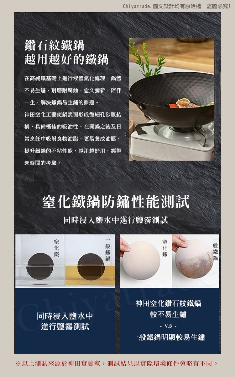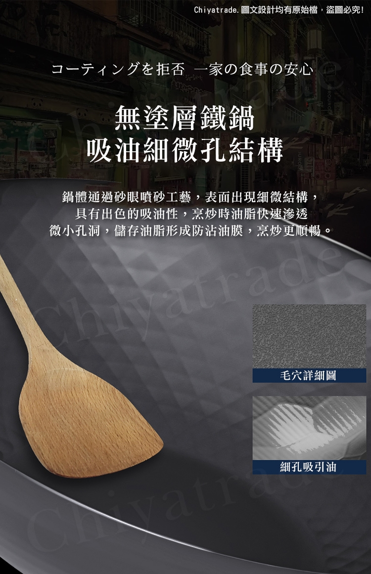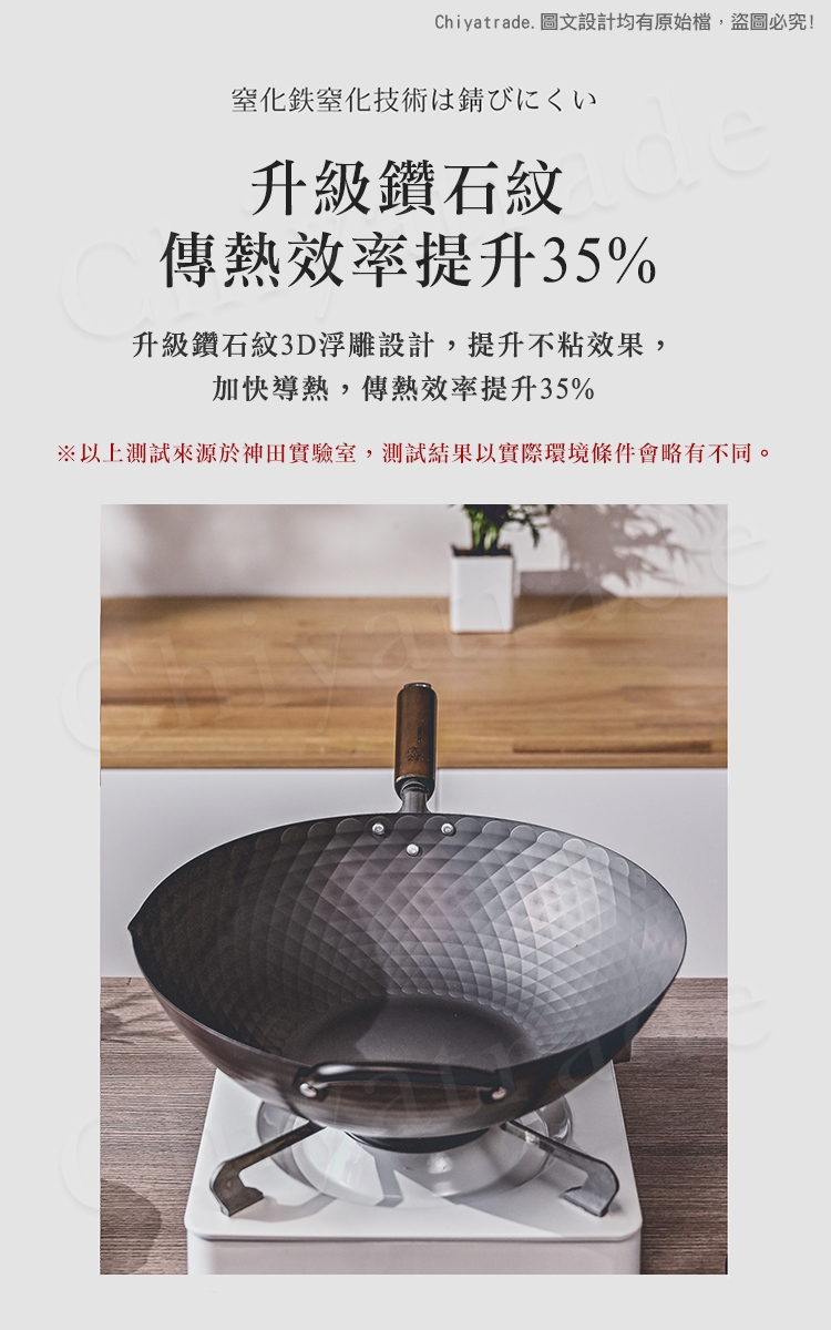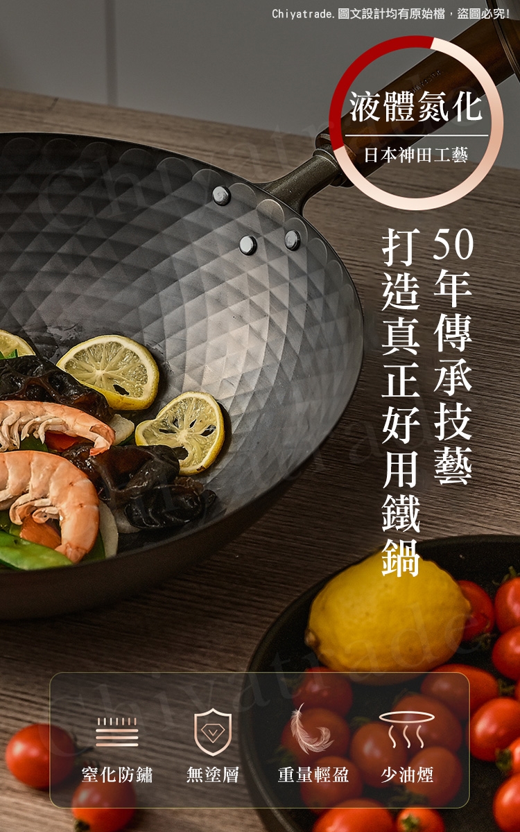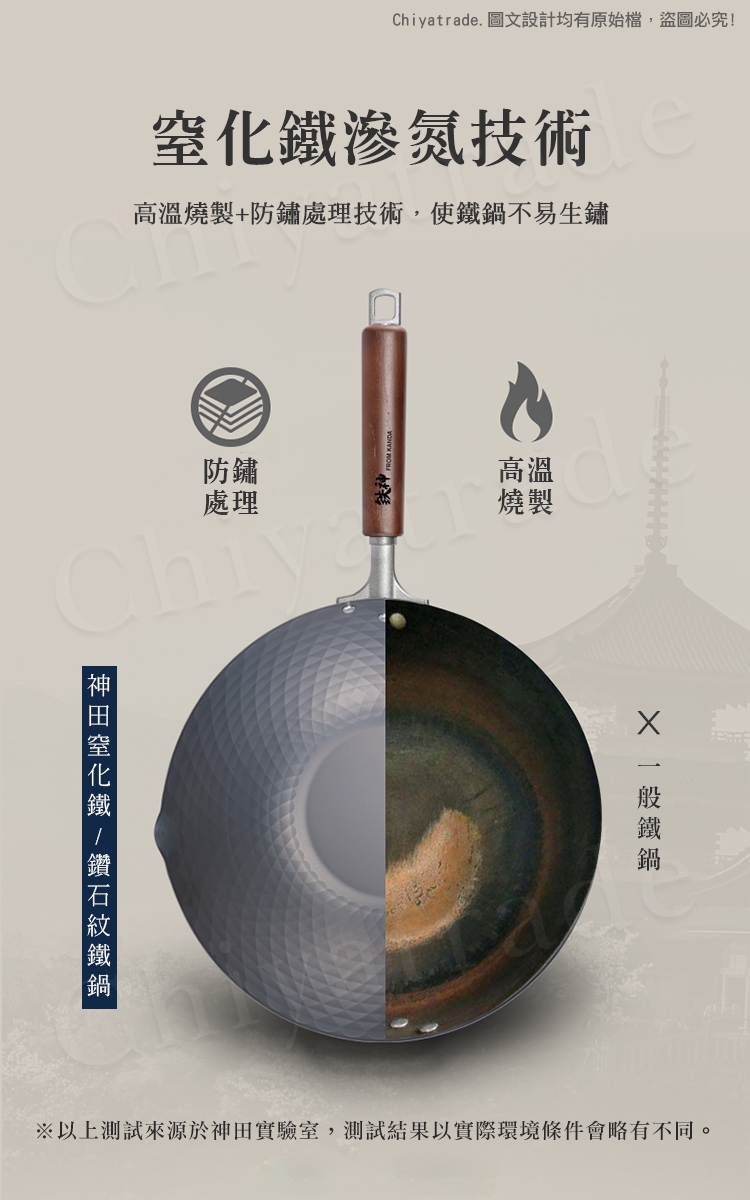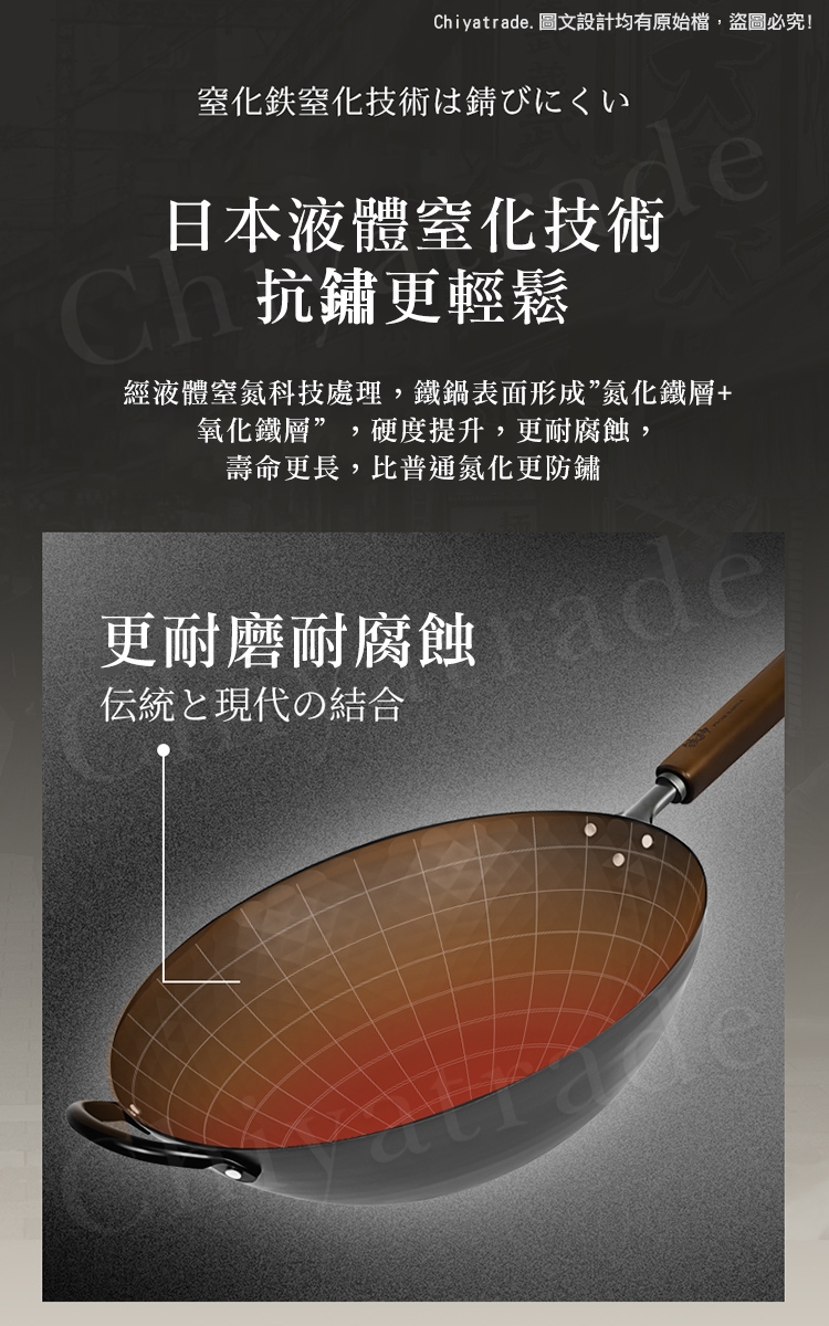 鍋身日本窒化鐵滲氮技術防鏽處理,不易生鏽(並非不會生鏽請妥善保養方可長壽)