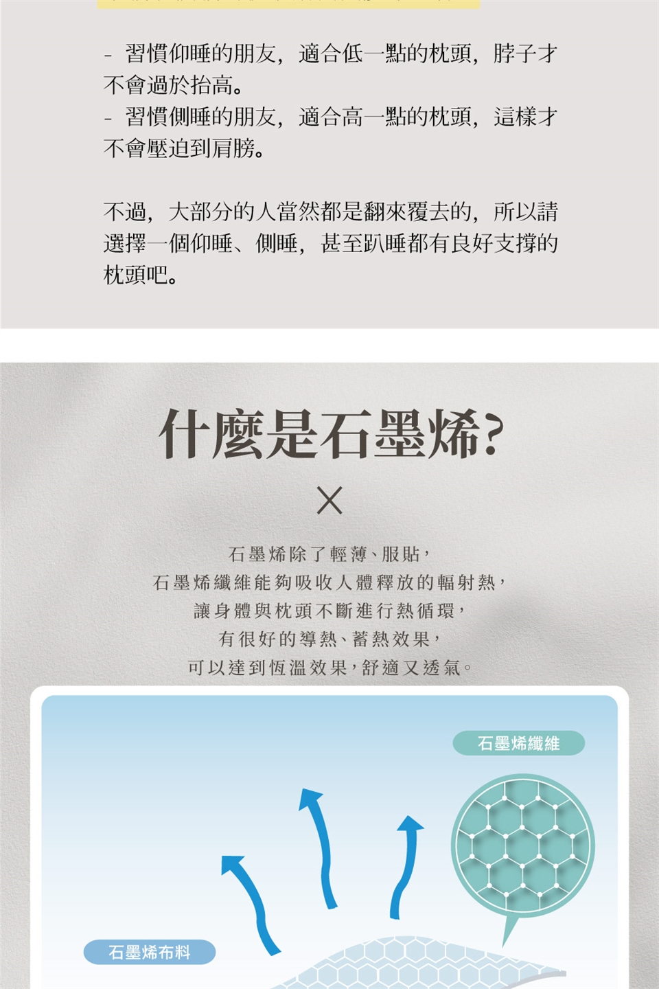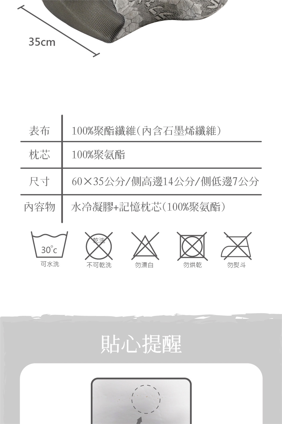 石墨烯枕套:可水洗/不可乾洗/不可烘乾/不可漂白/不可熨燙/懸掛晾乾