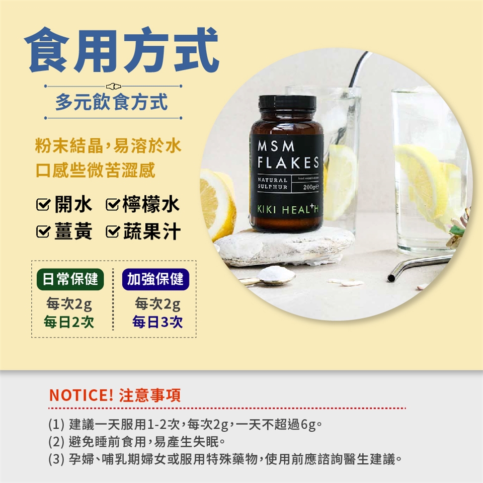 使用方法:每天1-2次,一次2克加入開水、果汁或優格之中一起飲用,一天不超過6克。
