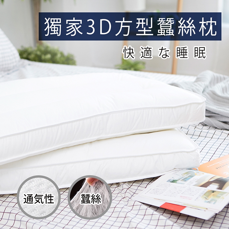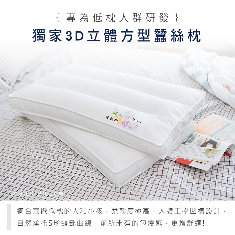 BELLE VIE 獨家3D立體方型蠶絲舒眠枕 (中低枕款) 買一送一