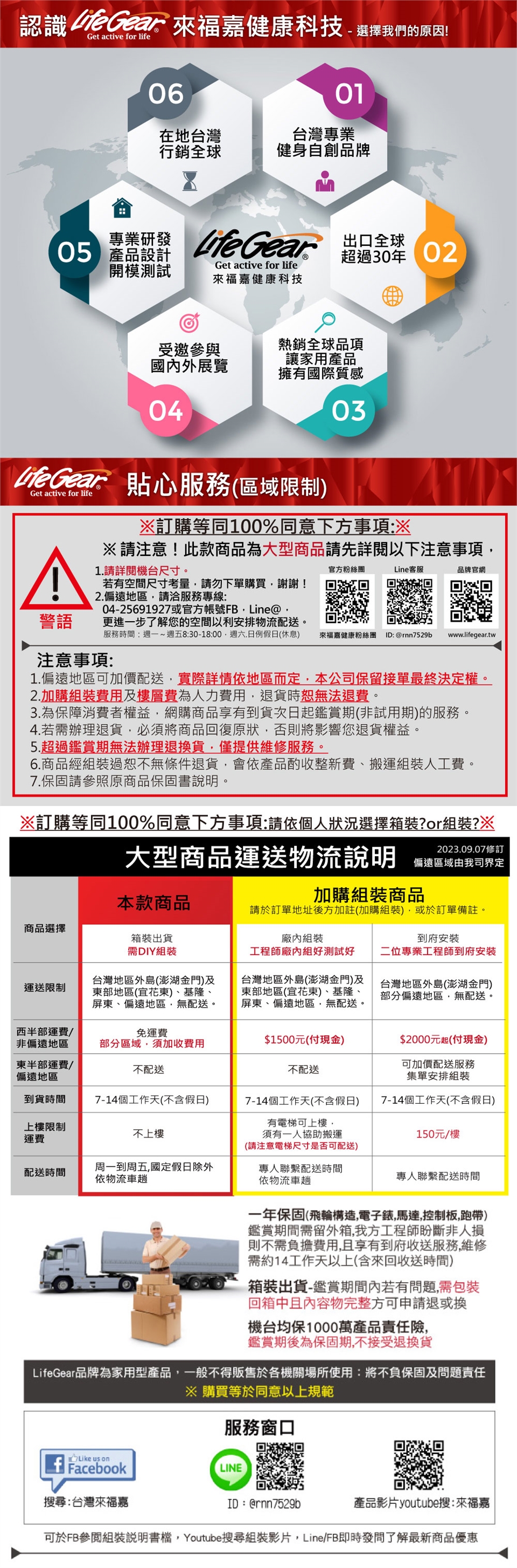 保固範圍(非人為損壞):飛輪構造,電子錶,馬達,控制板,跑帶。