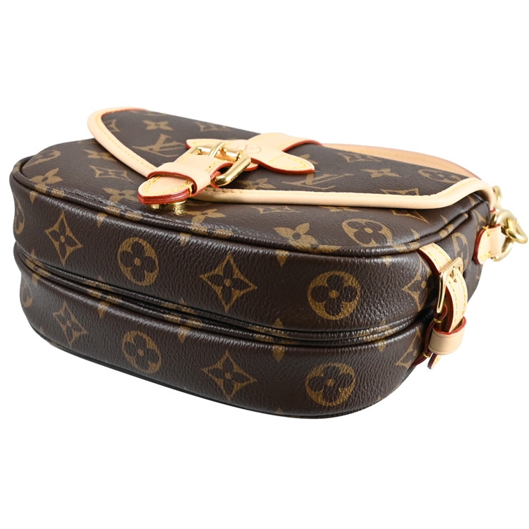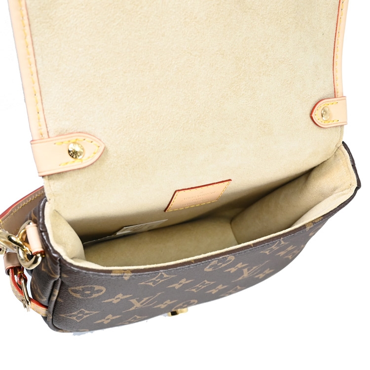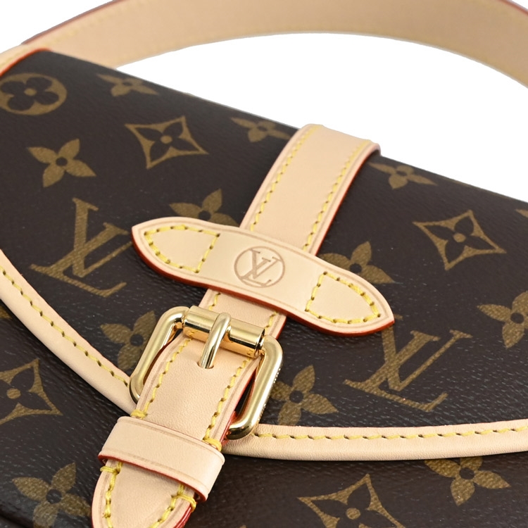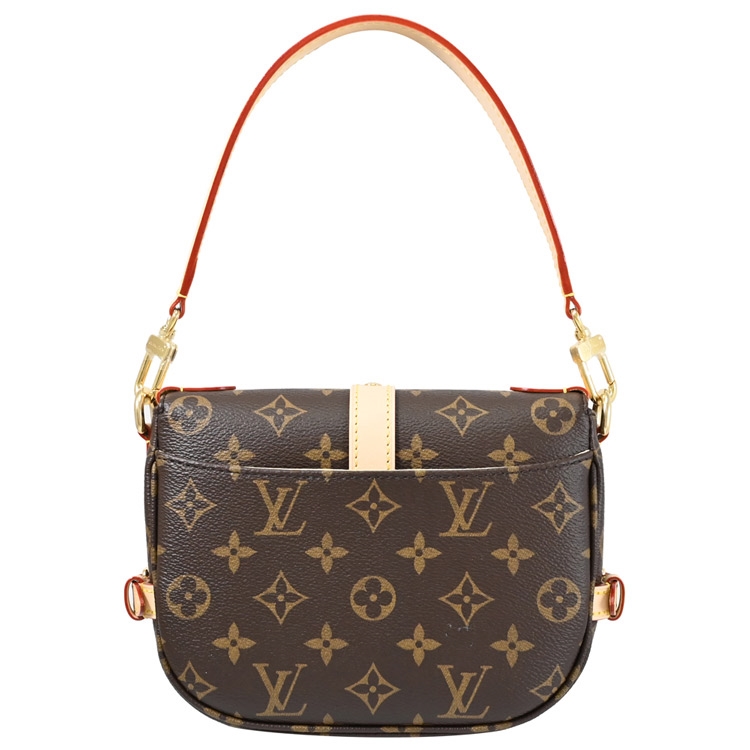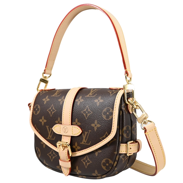 LV 專櫃Saumur BB馬鞍包,以Monogram帆布製作,設計綴有皮革包邊和取材自典藏款式的搭扣等復古細節,翻蓋磁釦式開口,附1肩背帶+1斜背帶可供變換使用,設計極富趣味,充滿都會時尚味道,是款時尚又實用的百搭包款。