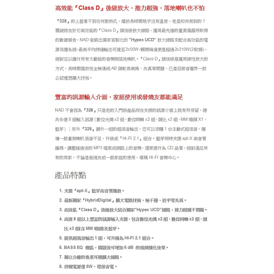‧最新獨家『HybridDigital』擴大電路技術,無干擾、近乎零失真