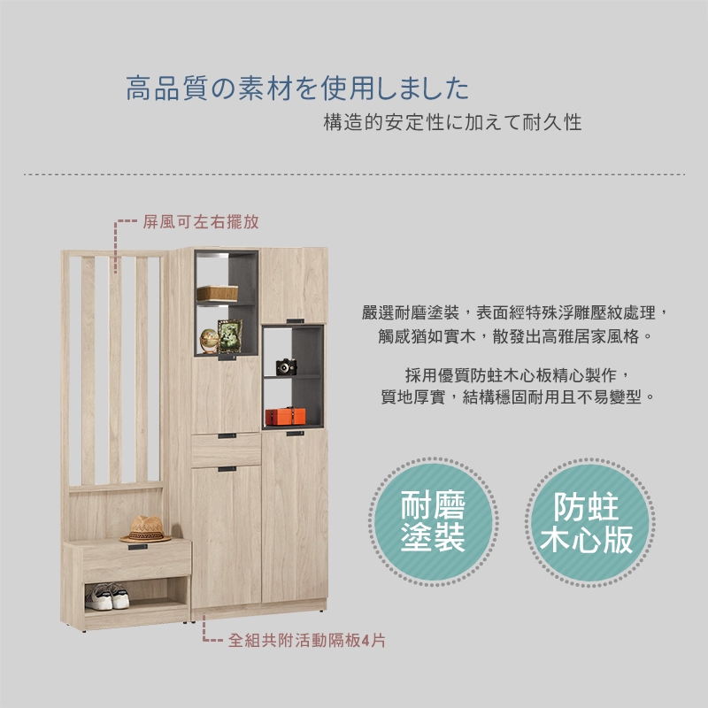 附有四片活動隔板,可依需求輕鬆調整高度,增添收納便利性!
