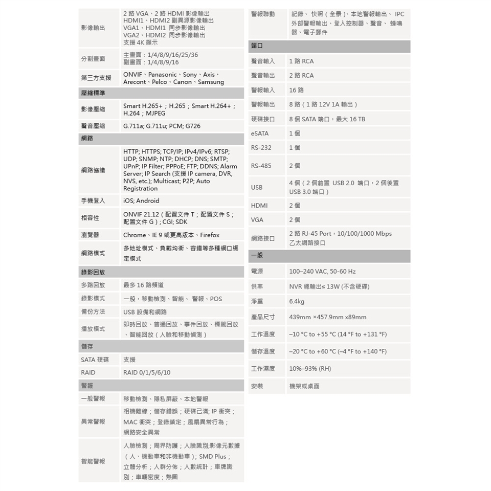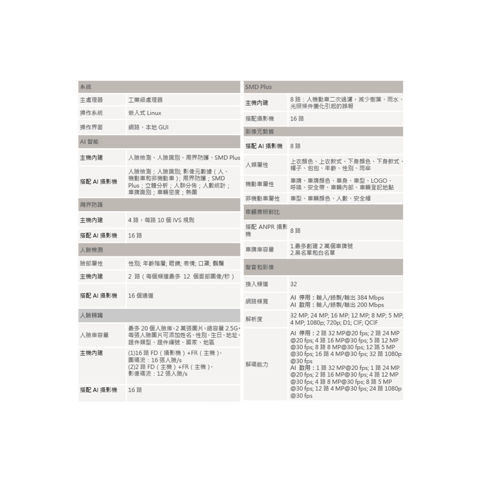 -主機內建:2 路人臉檢測識別、4 路周界防護、8 路 SMD Plus