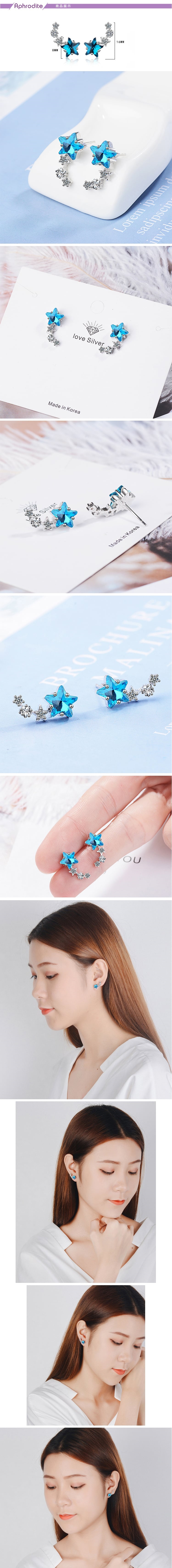 【愛芙晶鑽】閃耀藍色五角星美鑽流星造型耳環 美鑽耳環 五角星耳環