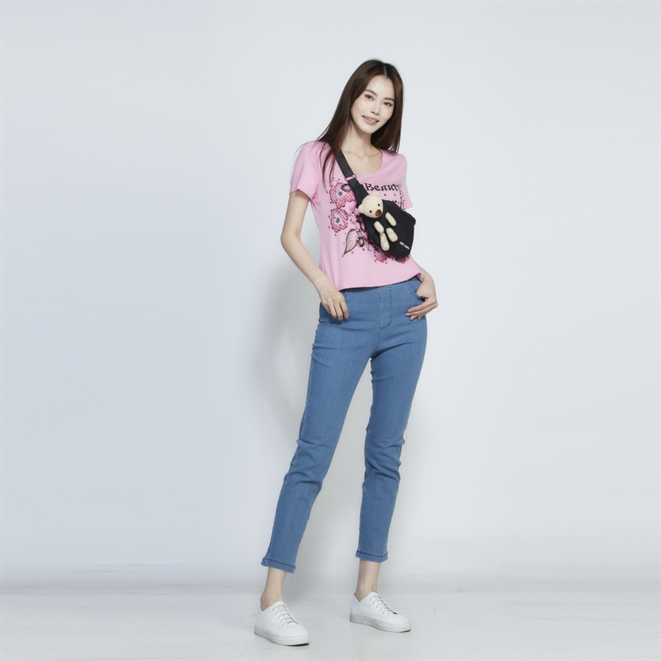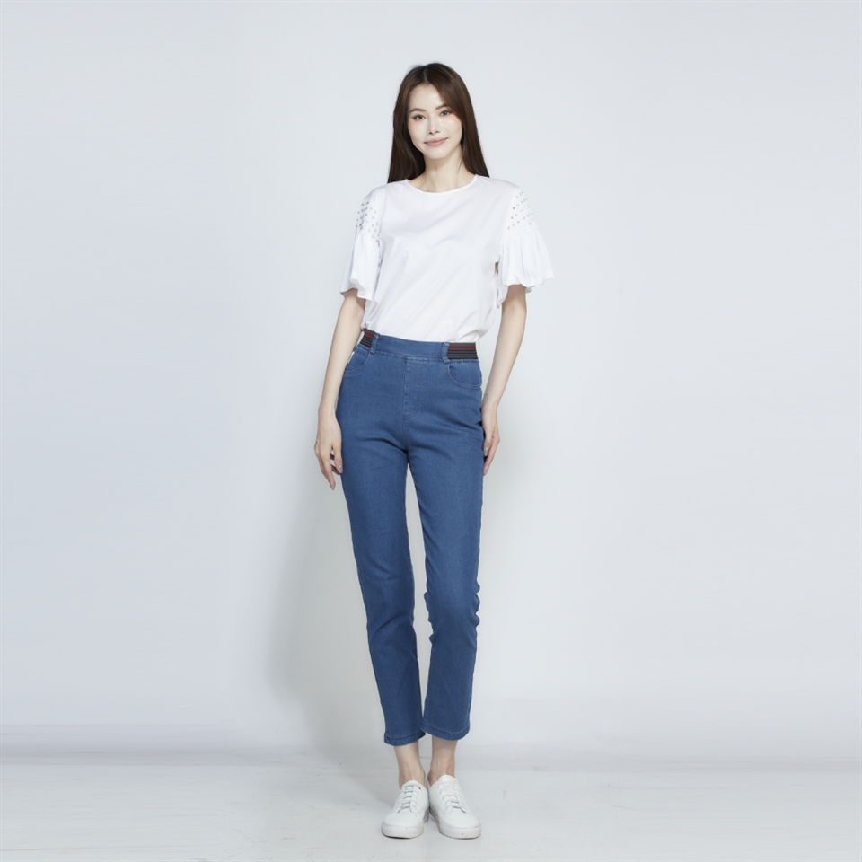 05.腰頭配上彩色相筋,適合各種潮流風格穿搭,經典的牛仔褲,是必備的百搭款。