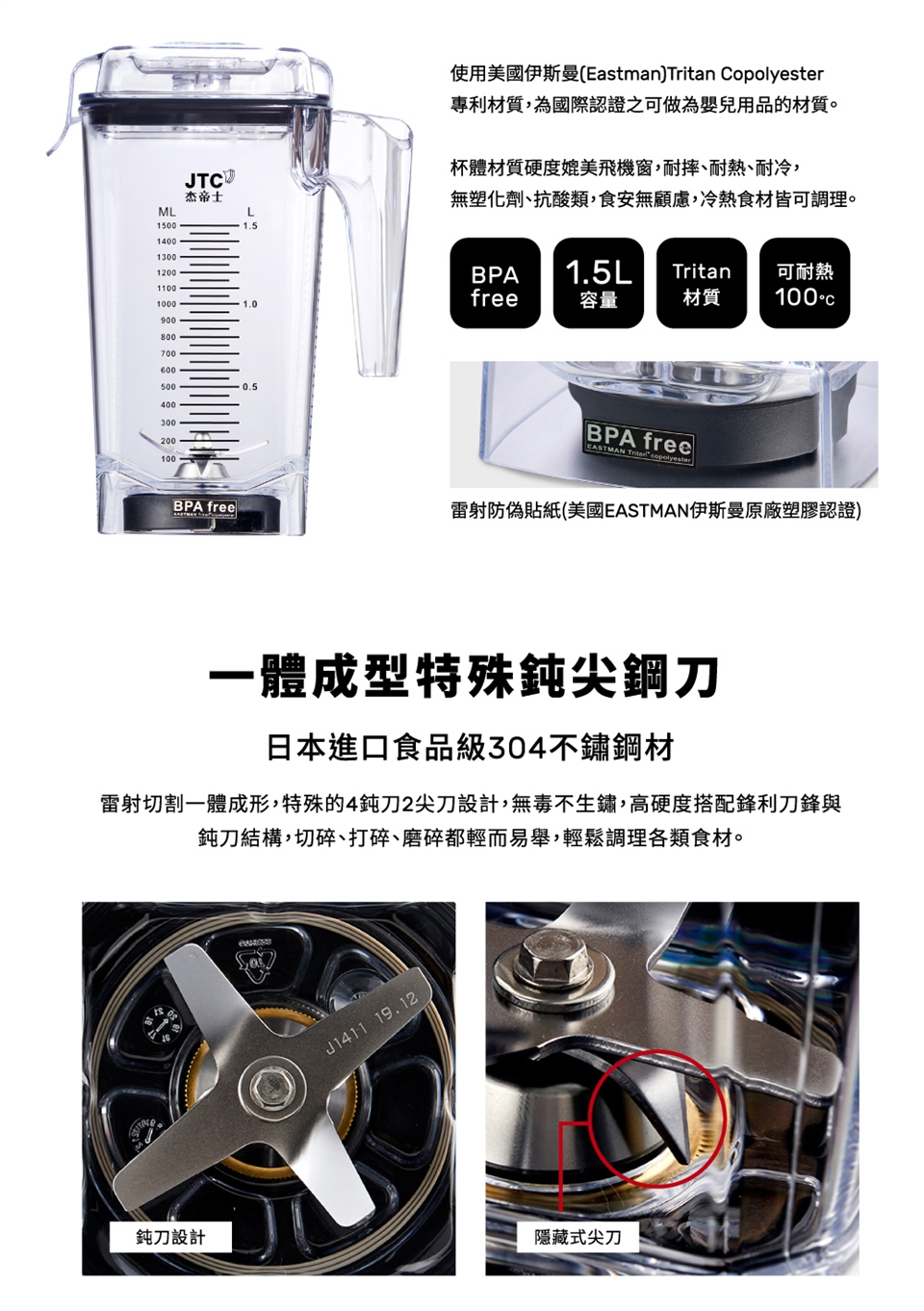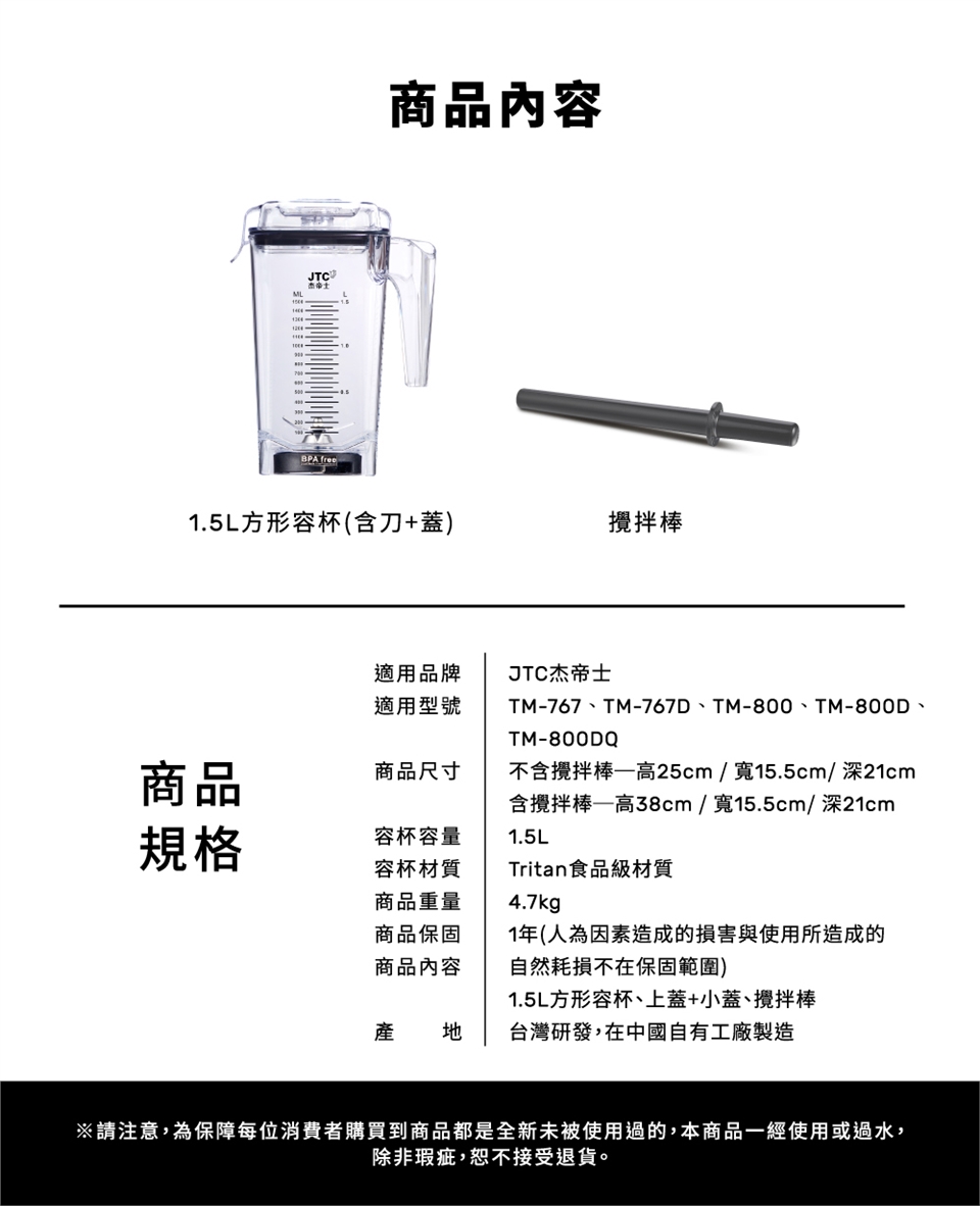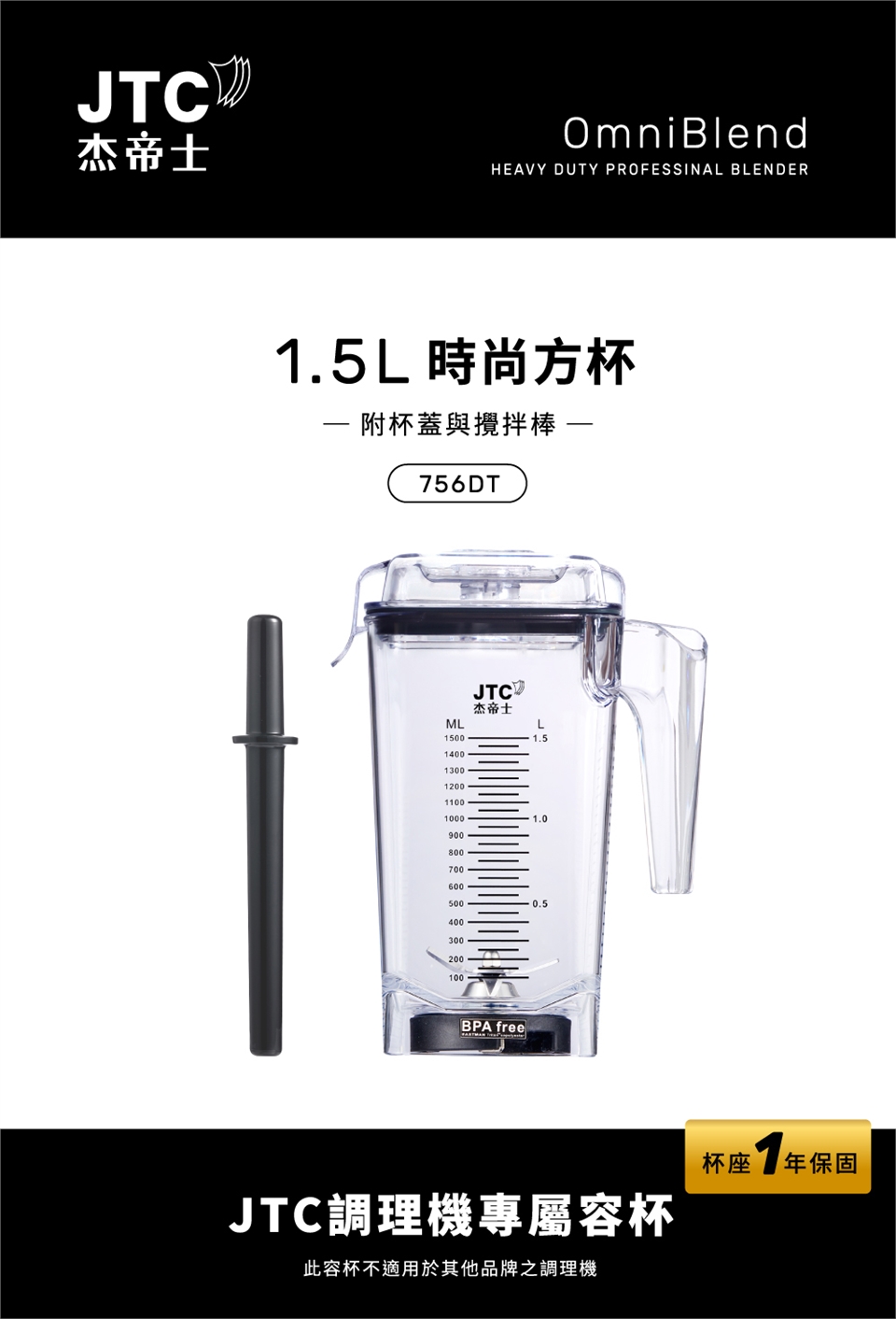 JTC杰帝士 OmniBlend 1.5L時尚方杯-附杯蓋與攪拌棒