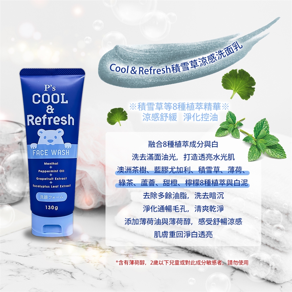 ◆添加薄荷油與薄荷醇,感受舒暢涼感,肌膚重回淨白透亮。