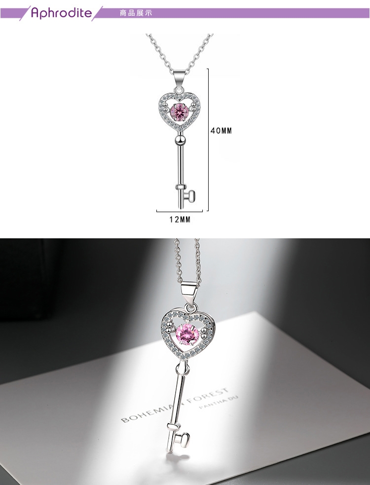 【愛芙晶鑽】璀璨鋯石靈動閃耀微鑲美鑽造型項鍊吊墜 款式37 粉鋯愛心鑰匙