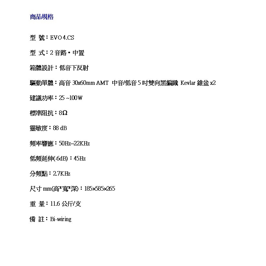 英國 Wharfedale EVO 4.CS 中置喇叭/只