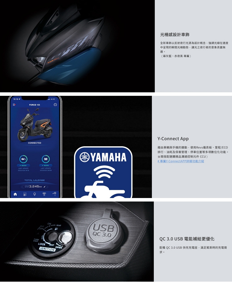 新一代的Yamaha專有鍛造技術亦造就輕量化跑格鋁圈,加上制動性更強的剎車,進一步提供敏捷操控上的安心感。