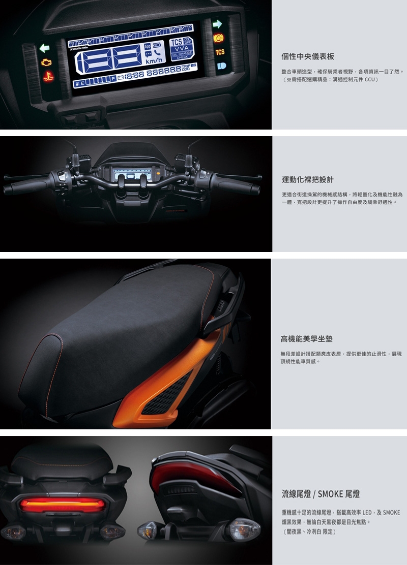 以及易辨讀的中央儀表板,除了能增加安全性,更能讓騎乘者更專注於騎乘。